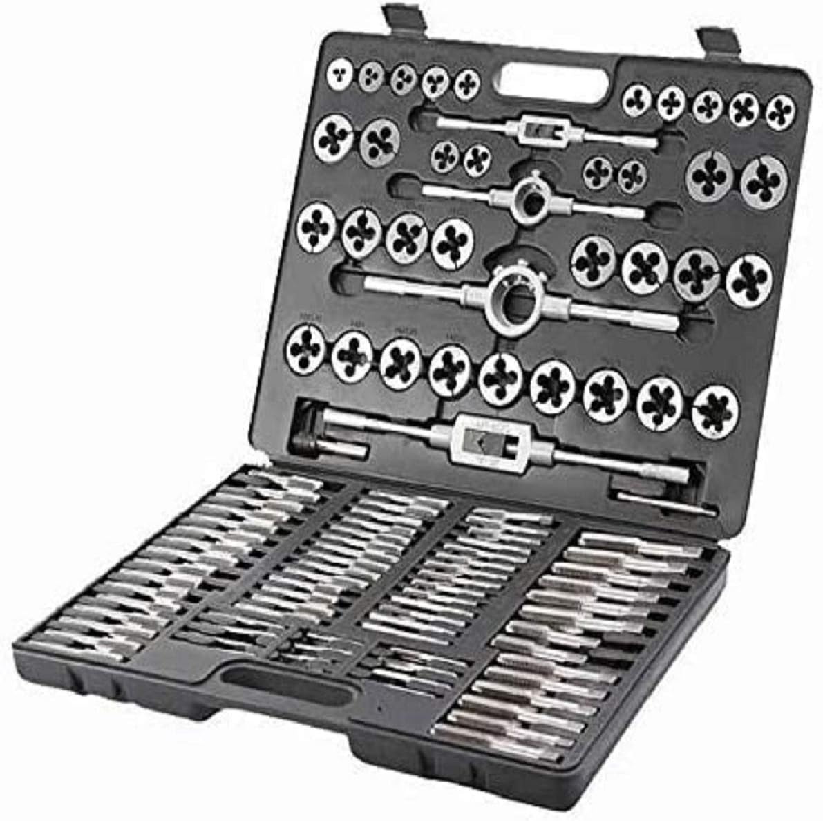 ABN metric, SAE standard tip is suitable for cutting external and internal threads. Also, the Die 60-Piece Rethread Set Rethreading Kit allows you to accurately cut external and internal threads. A wide set for renewal. Made in high-quality steel for maximum strength and longevity. Be able to cut materials like iron, steel, aluminum, copper, etc. Blow-molded plastic of heavy-duty so can carry easily.